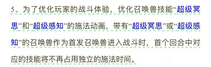 上面的这一个是在本周维护公告中的调整,调整的就是在曾经的线下见面会上策划所对玩家做出来的承诺,那就是对超级冥思和超级感知的施法动画效果进行调整,进入战斗的时候将不再占用独立的施法时间,各位玩家刷任务的效率会被提升,所以大家有什么问题的时候还是要尽可能的给策划提出来,大家所提出来的问题或者建议或许会在某个时间段在梦幻西游中上线。